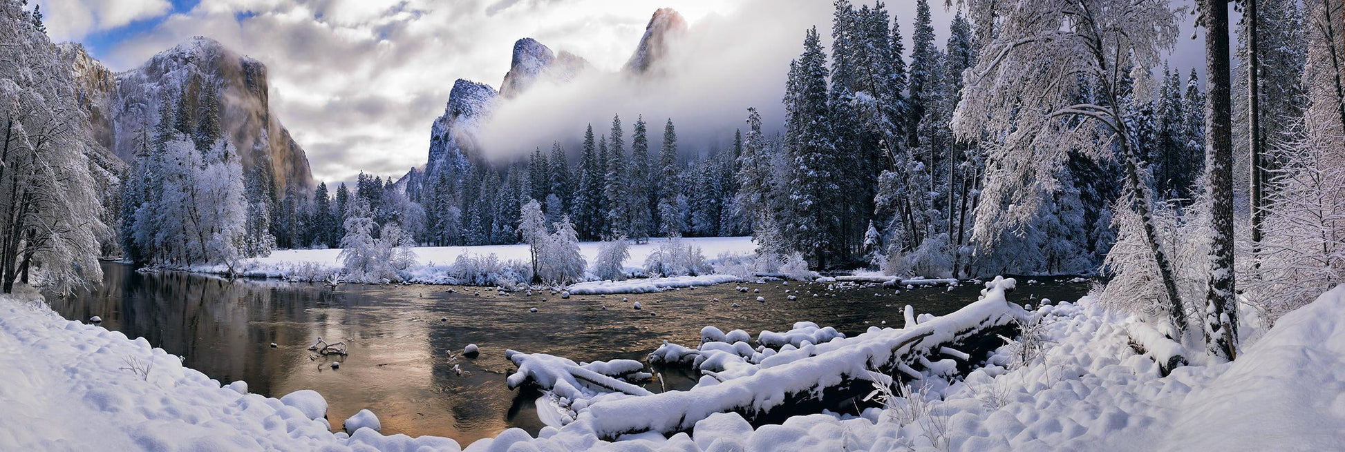 My best mate Mic had just arrived from Australia and I asked him where in the world he’d like to shoot. Without hesitation he said Yosemite. I had been keeping a close eye on the weather, and noticed the second week in February there was some unmatched weather approaching. That’s all we needed to know. Eight hours later in the 4-wheel camper, we arrived and camped the night. Throughout the night, snow fell continuously and I could feel a shot happening. We got up around 5:30 am, and carefully drove on snowy, uncleared icy roads to Valley View. As the sun rose, this absolutely magic scene unveiled itself to us. I shot like a mad man, goosebumps all over, as I pressed the shutter. We were stunned and in total awe of the incredible scene—the silence only broken by the running stream and my shutter.