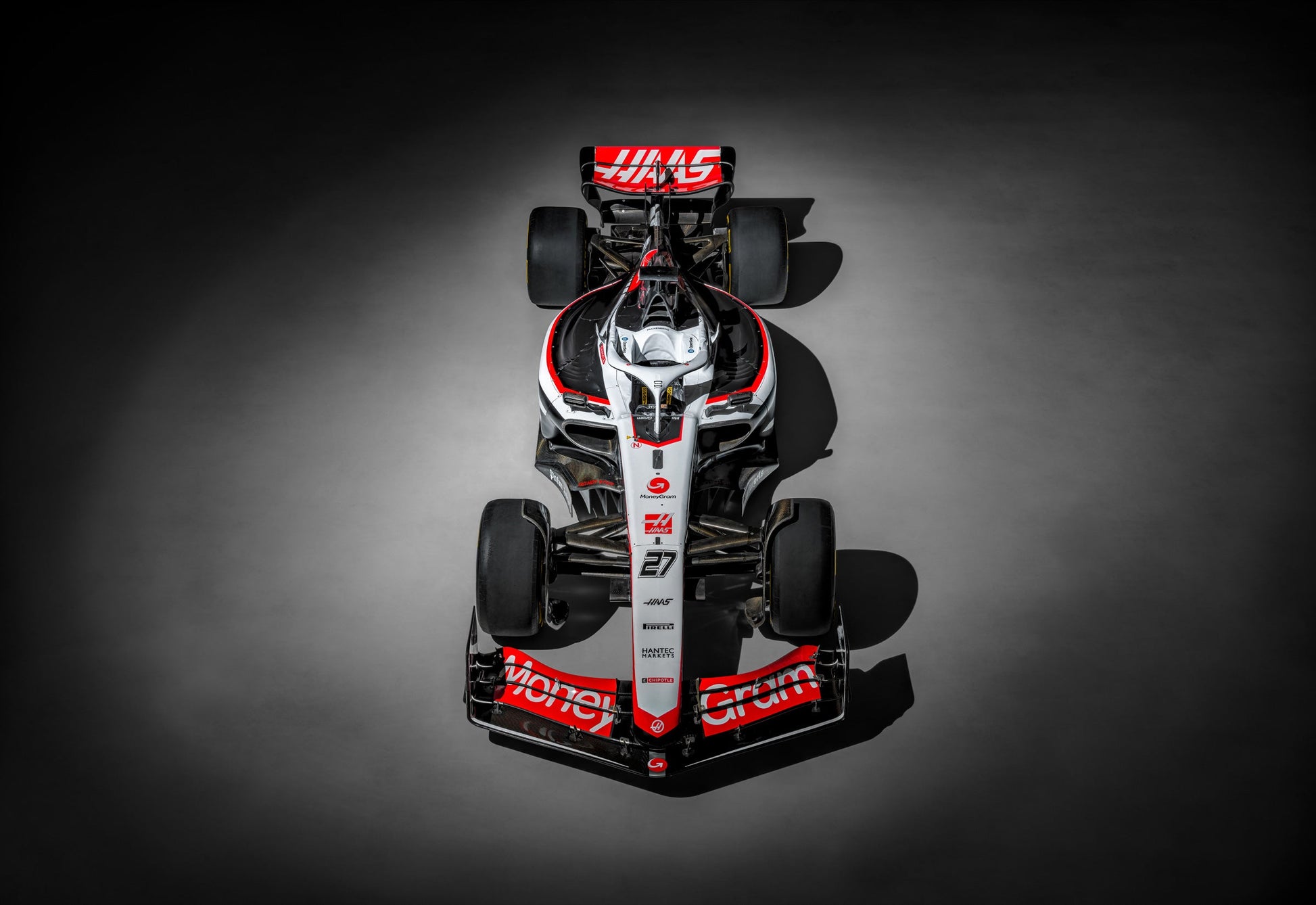 In collaboration with the MoneyGram Haas F1 team, a shared passion for pushing boundaries was discovered. As the project unfolded, the focus shifted to the opposite end of the spectrum, expanding to the industrial might that also defines Formula 1. Nestled away in a secluded airport hangar just off the Strip, the Haas car found a new stage. Surrounded by steel beams, and concrete floors, the race car was re-envisioned under a completely different light.
