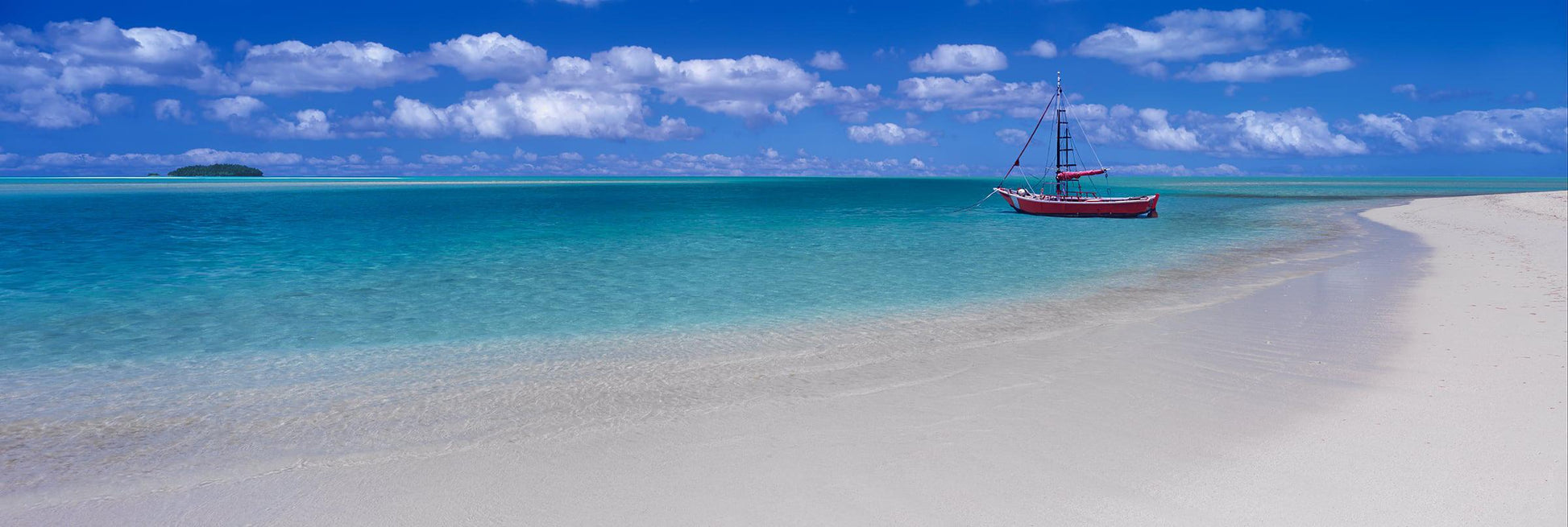 It was a perfect day. This is the kind of day you expect when you are on vacation. I had to capture this on film. It was an incredible feeling being alone on this sand island, the warm water of the Pacific Ocean lapping on my feet. The lone boat was such a classic. Without it there would be no shot. It added a sense of solitude and calmness. Just picture yourself in the boat, cruising out to the remote island for your getaway. The balmy summer day, turquoise waters and soft sands all contribute to the perfect shot. Puffy white clouds came and went. I took many rolls of film and for me, this was the perfect moment.