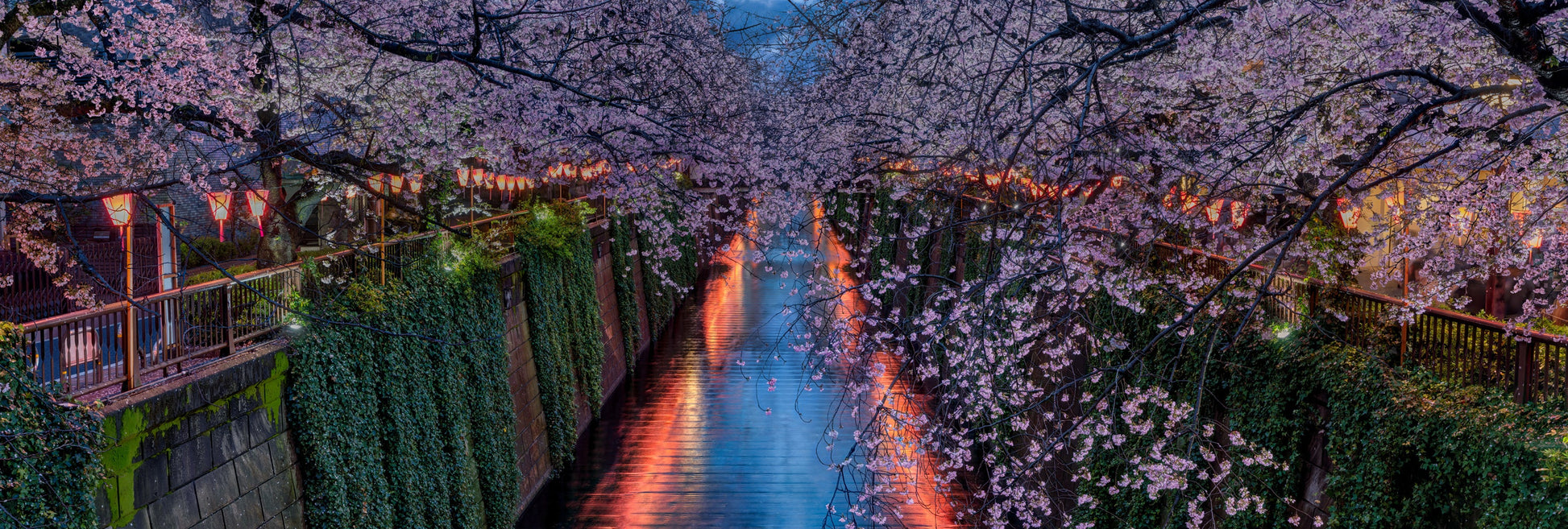 Instantly transformed into a vibrant festival of pink and white flowers, the normally laid-back neighborhood was alive with energy and color. The rows of cherry trees lined the river stretching over like a bridge to another world. It was spectacular – every petal so fragile yet resilient, standing tall against any storm that may come their way. As the sun began its set, it was critical to frame the perfect shot. It was like something straight out of a fairytale. Every detail of the scene was carefully considered – the light, the angle, the composition. Now it was time to get the camera cranking – frame after frame. This moment, this image, would forever capture the essence of this ethereal world. Truly there's nothing quite like the beauty of nature in full bloom.