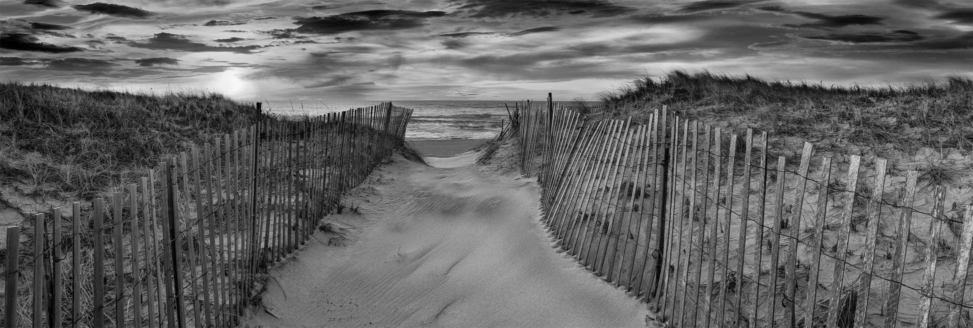 As the sun gracefully touched the horizon, it cast its warm glow over the shifting sands and the iconic wooden fences. In that moment, I knew this scene was destined for black and white, a choice that added timelessness and a sense of nostalgia to the photograph. It captures the essence of the ever-changing shoreline, an image that echoes the allure of the Atlantic's boundless majesty.