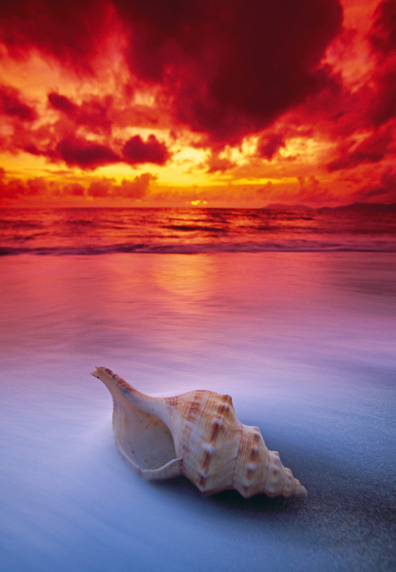Living on the beach at Holloways affords me the luxury of awakening to a spectacular painted sky every morning. I never tire of it, and love to capture the different moods of its beguiling backdrop. I lay down on the sand and framed this shell in the foreground as the dawn show intensified. I shot a series of exposures using a slow shutter speed, and as the waves flowed gently over the shell it added a misty effect.